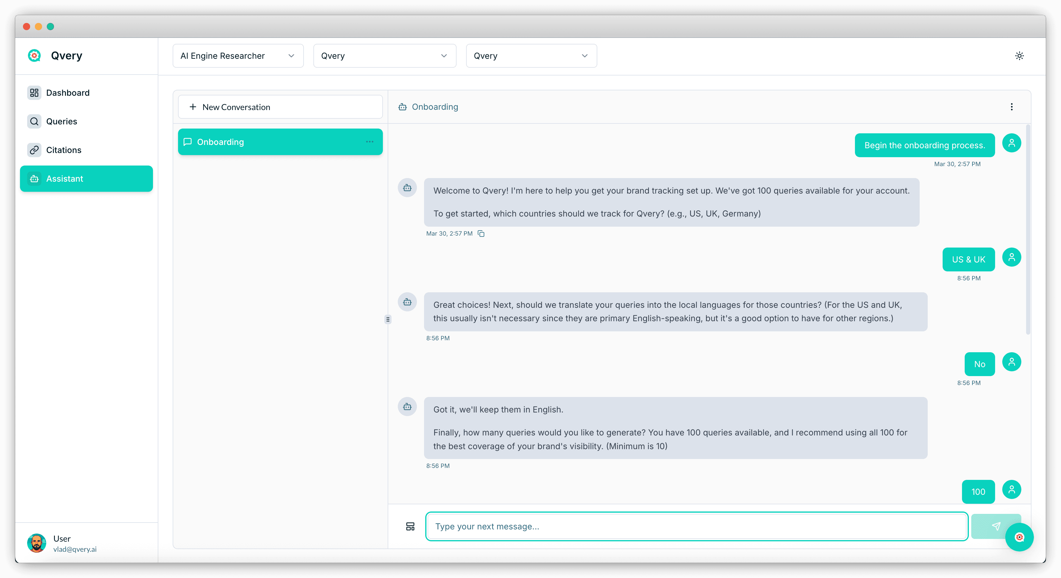 Sign up for Qvery, and our onboarding AI assistant handles the whole thing for you: