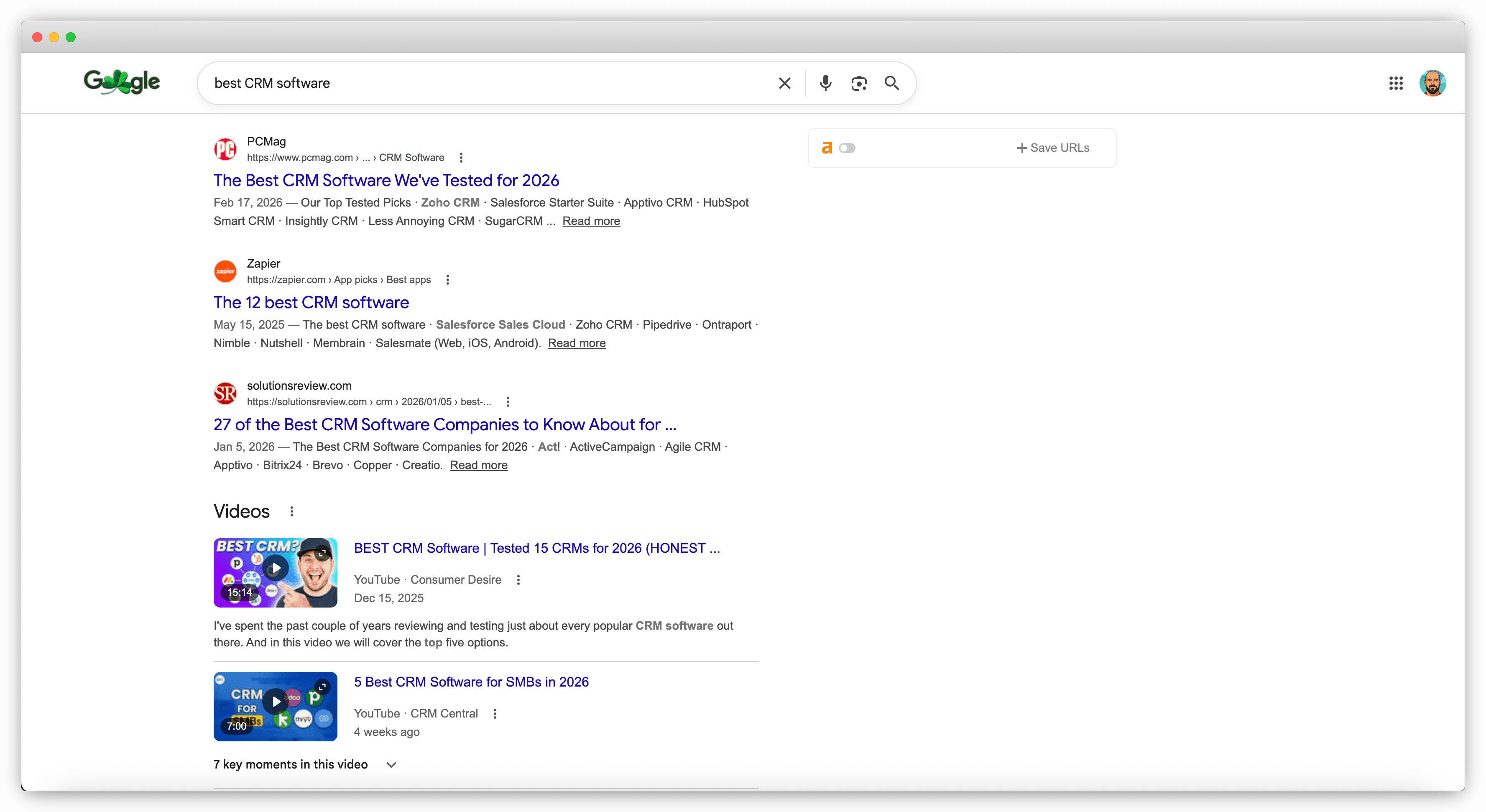Traditional Google: You search "best CRM software." You get 10 links. You click three. You do your own research.